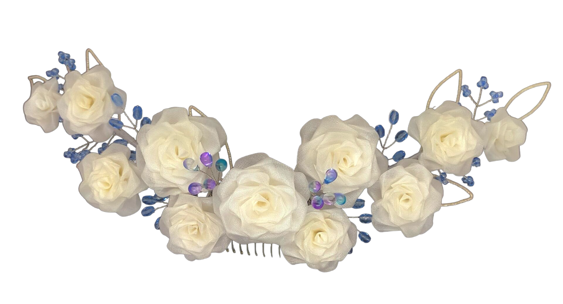 葉をワイヤーで作り花と実だまを合わせてヘッドドレスを作ります。 -