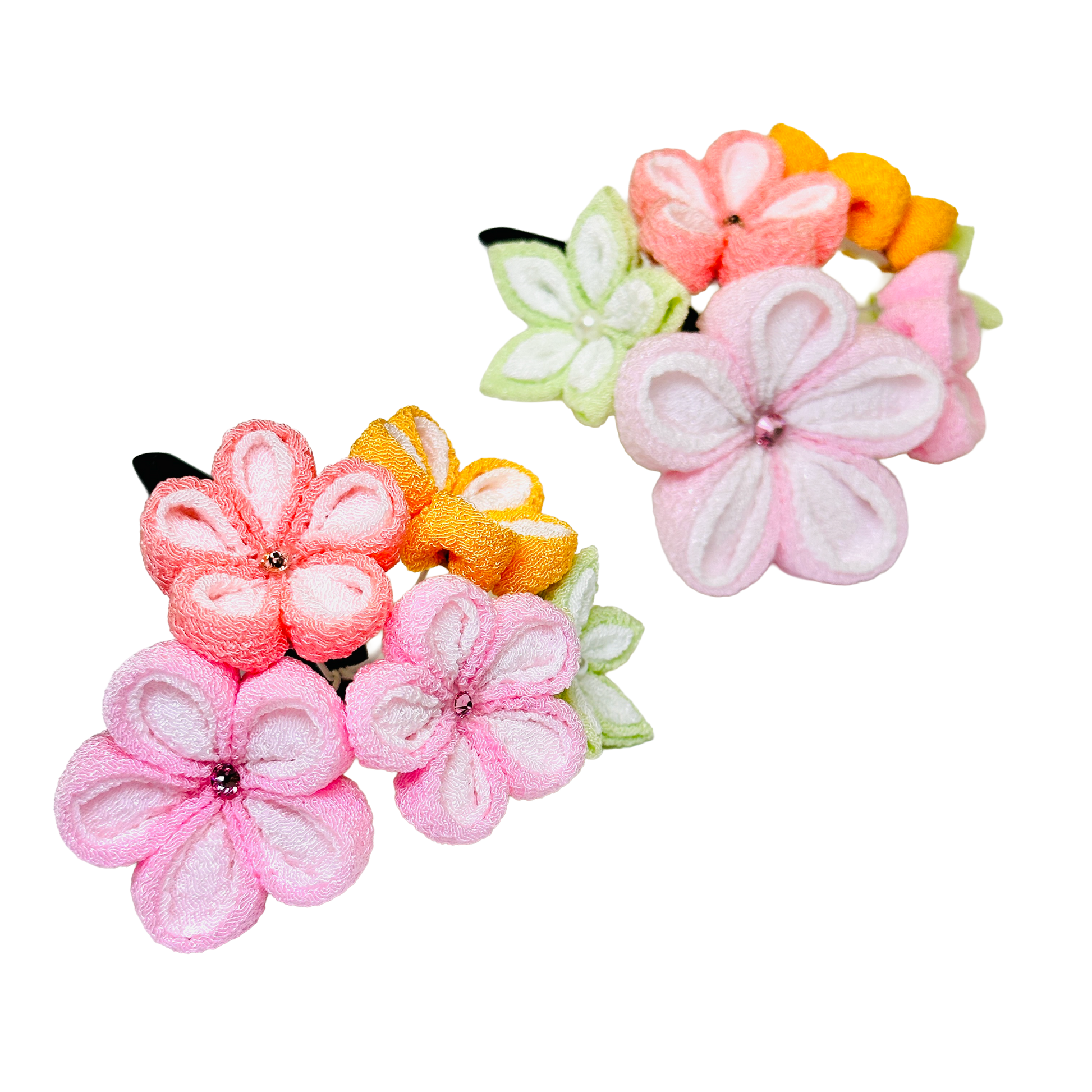 「若月」重ねちりめん2点セット・パッチンピン仕立て・恋桃(ピンク)・夢藤 (パープル)