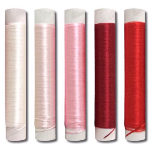 つまみ細工職人も使っている絹(シルク)の糸です。24本取り、32mあります。かんざしやコームを組み上げた時に使います。力を入れても切れにくいのでしっかり美しく仕上がります。