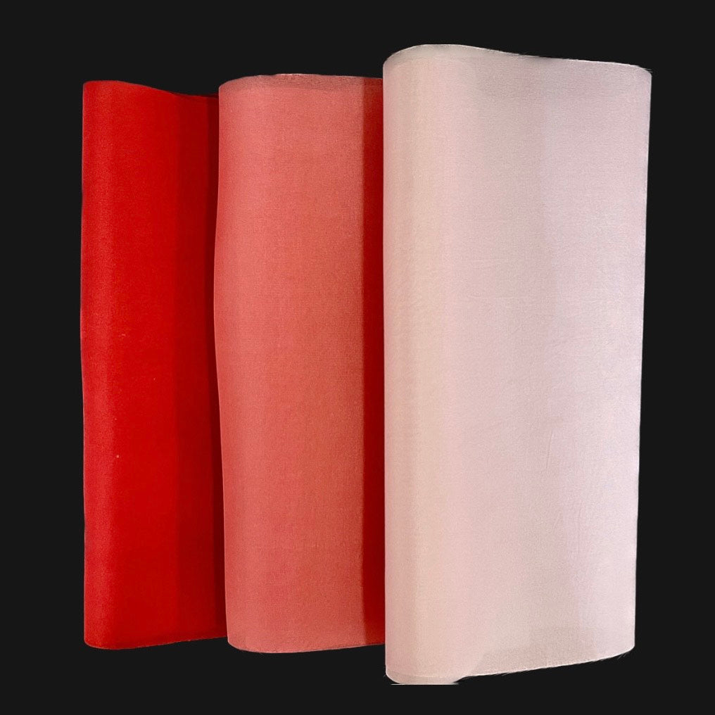 本絹『羽二重 8匁シート』 羽二重初心者の方にも摘まみやすい厚みとなりますので、是非お試しください。 匁とは重さの単位となります。数字が小さくなればなるほど薄くなり、 透け感、ツヤ感もあり繊細な作品に仕上がります。 シートサイズは約25cm×53cmとなります。 ご自身でお好きなサイズにカットしてご利用くださいませ。