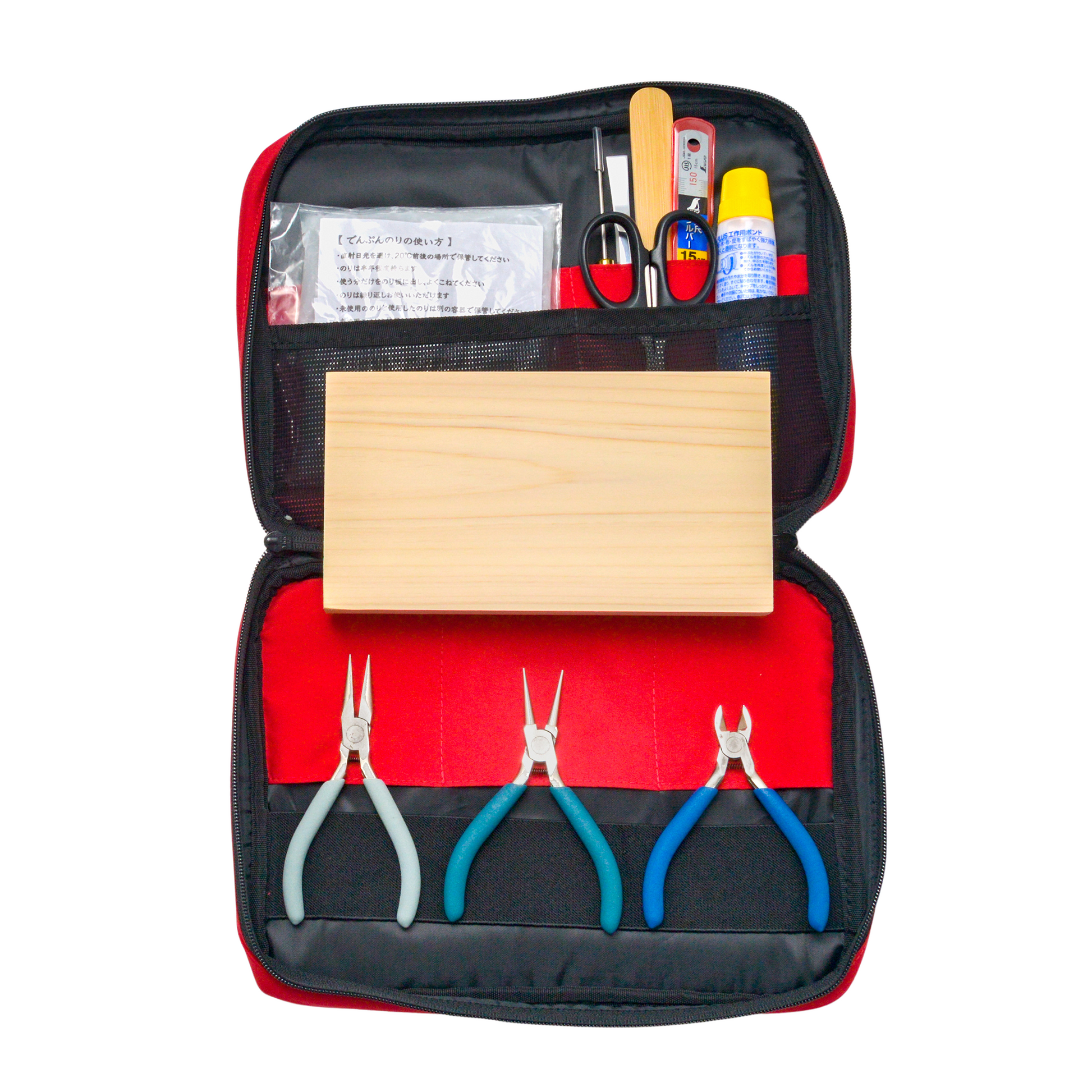 また、使い終わって濡れた状態のり板やのりベラ、タオルなどを持ち帰る時に便利なジッパー付きの透明ポーチが付属しているので安心です。