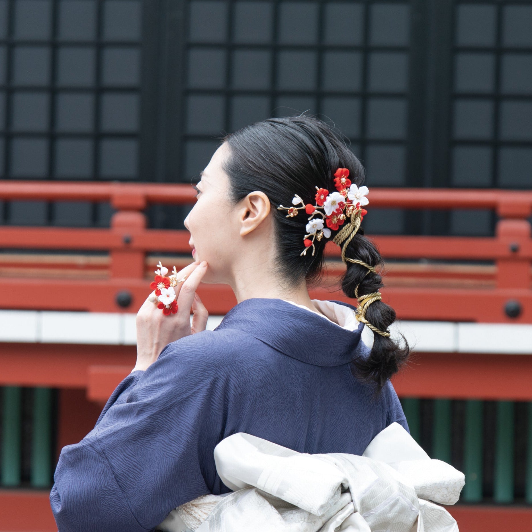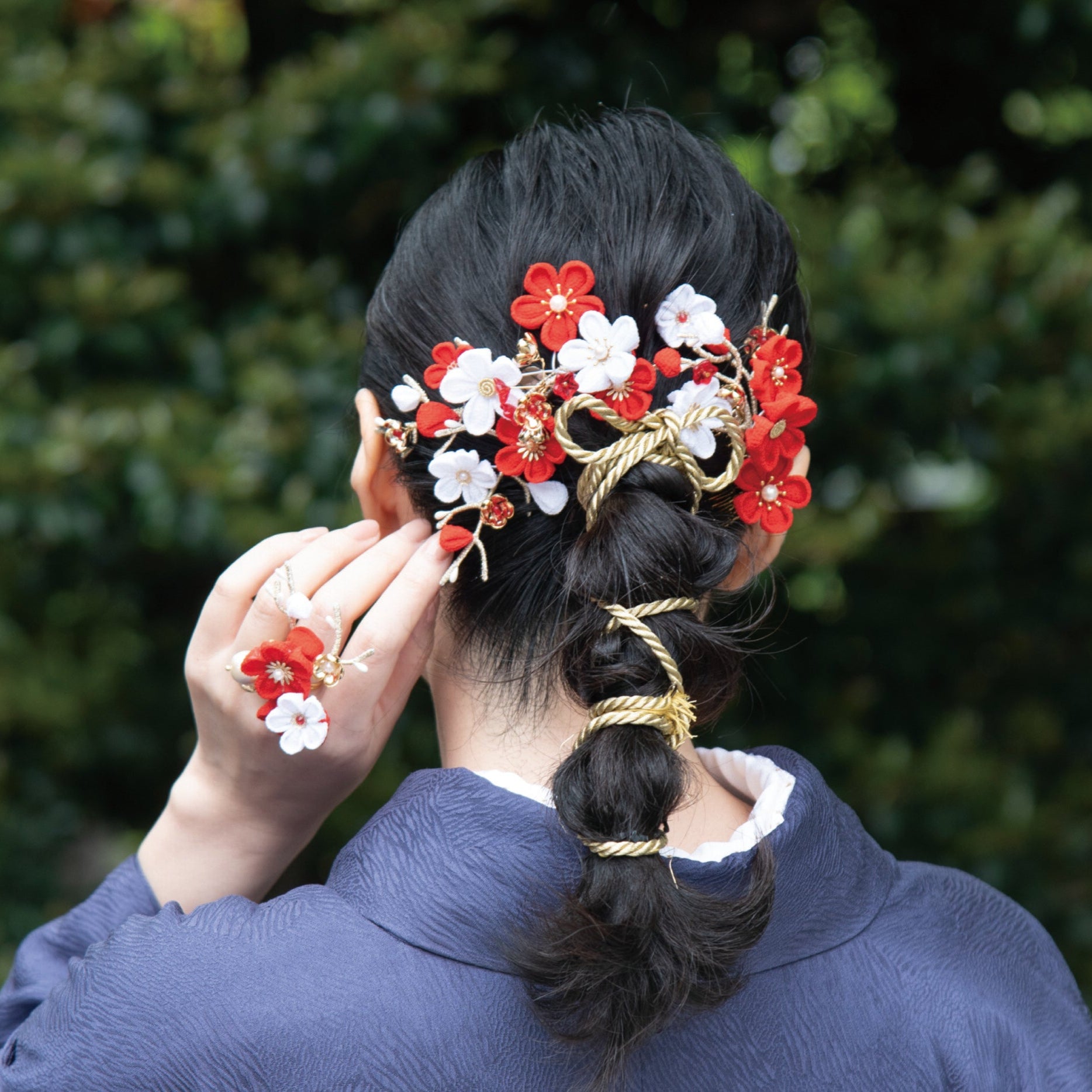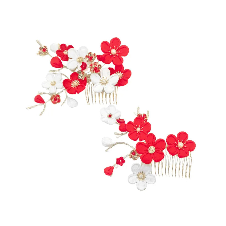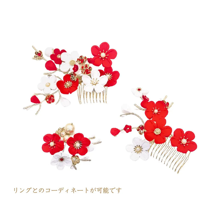 「紅白梅」ARTEDIVA コーム式髪飾り2点セット