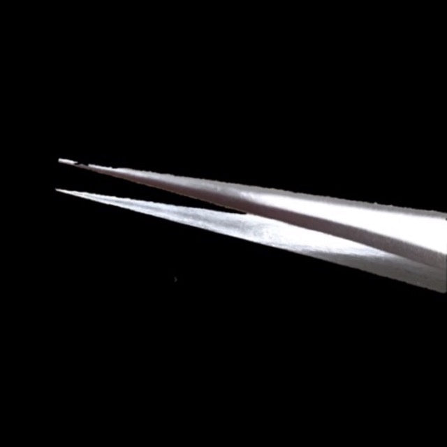 通常サイズのピンセットと比べて先がより細く薄くなっていますので、