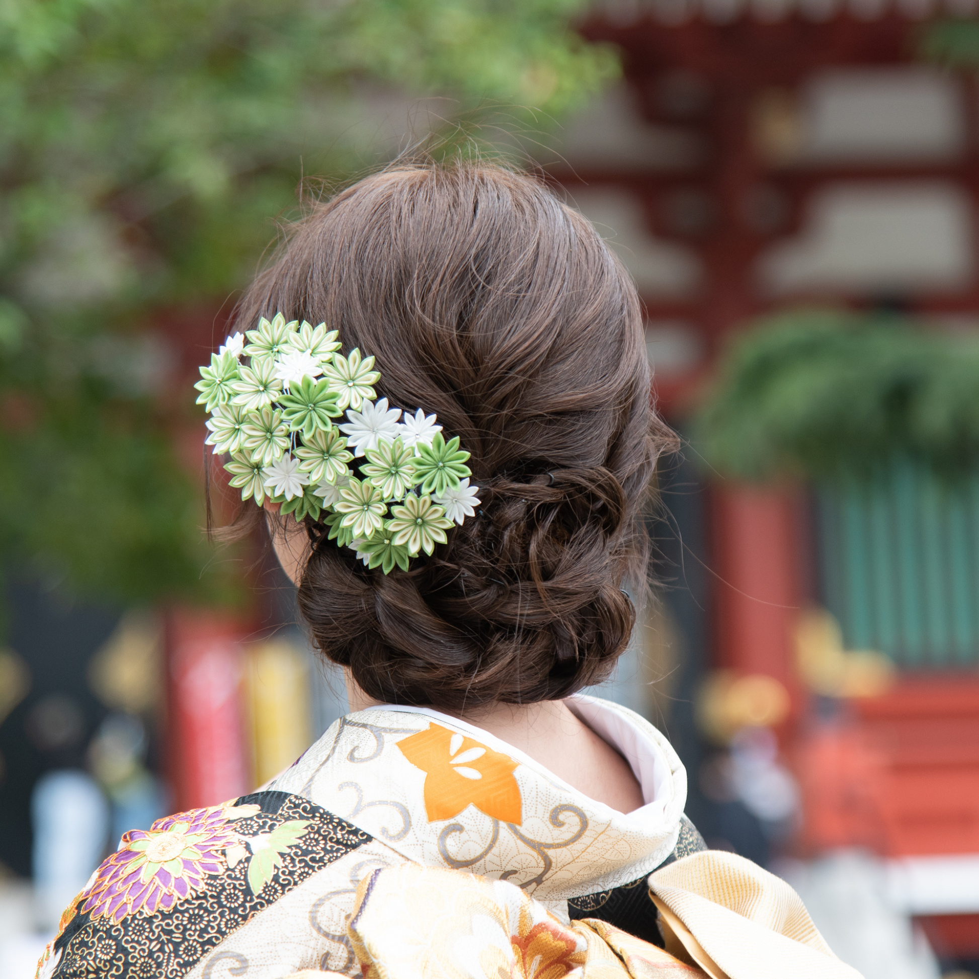 お色目も2色だけでまとめているので振袖だけでなく卒業式の袴姿から浴衣まで幅広くお使いいただけます