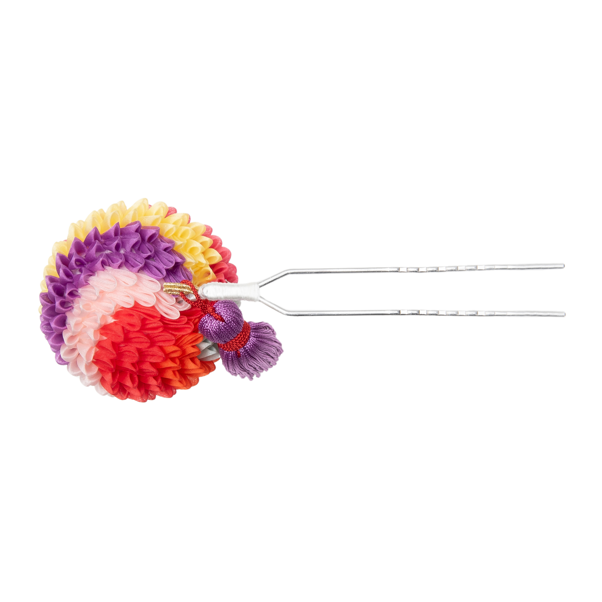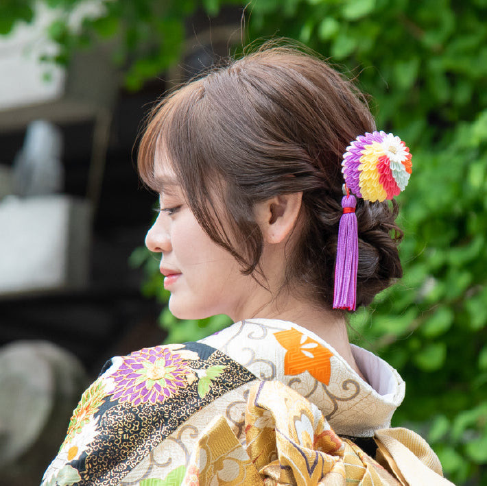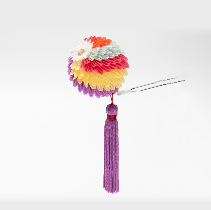 「襷」(たすき掛けの意味)という色が螺旋状に並ぶ配色もつまみかんざしの特徴です。