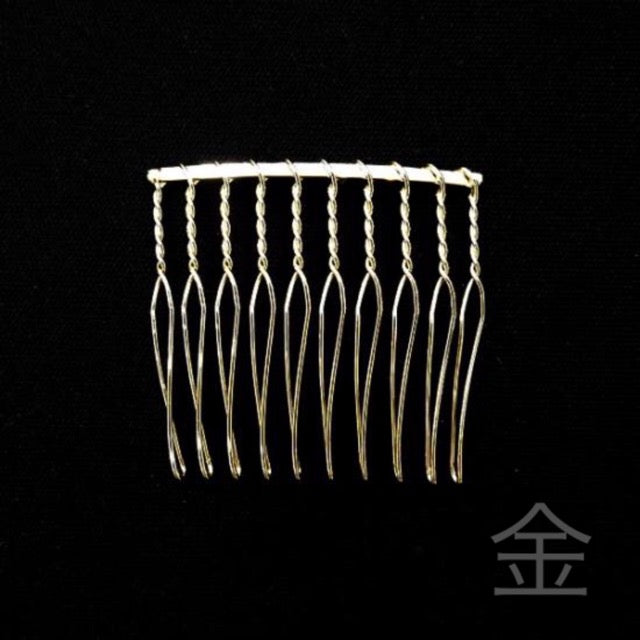 这是一把金属梳子。 它有三种颜色:金色、银色和黑色,所有颜色都闪闪发光。 它是用来组装放置在铁丝底座上的花朵的。 用梳子制成的发夹也可以用作服装、浴衣、连衣裙等的发饰。