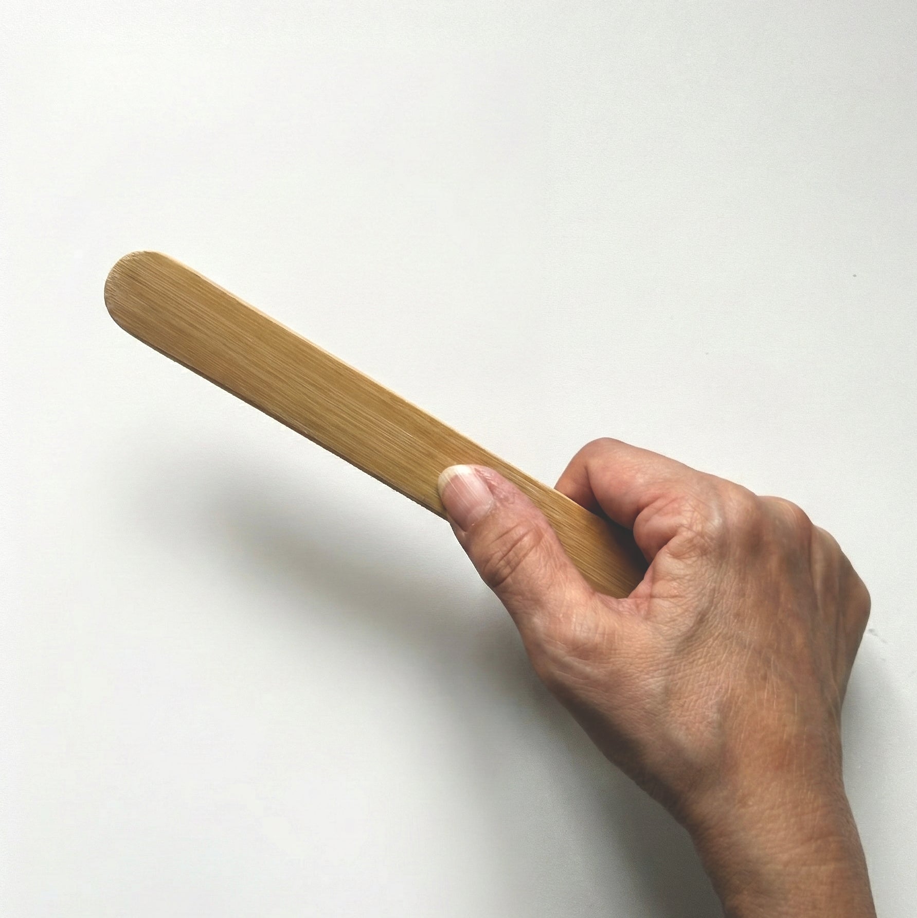 这款竹制铲子非常适合用于揉面,而且柔韧性很好,即使用力揉捏也不会断裂。它的形状设计符合人体工学,能够舒适地握在手中,减少疲劳。尖端经过精心打磨,以便更容易揉捏胶水。